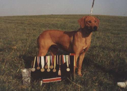 int. Ch. Belgian Ch, EUROPEAN Ch. 87, VDH Bundessieger 86, Vice world Ch. 86, World winner 89, RRCN clubmatch winner, BOB 87 the Netherlands, Amsterdam winner, BOB 86,87,88,89